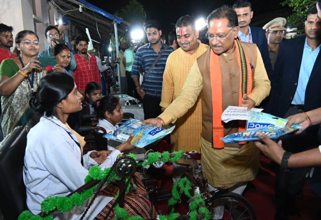 Chief Minister Shri Vishnu Deo Sai distributed tricycles and wheelchairs to the divyang girls at a children’s home for mentally underdeveloped children. The divyang girls extended birthday wishes to the Chief Minister and expressed their gratitude, stating, “This means a lot to us. With these tricycles, we can now independently fulfill our important tasks.”