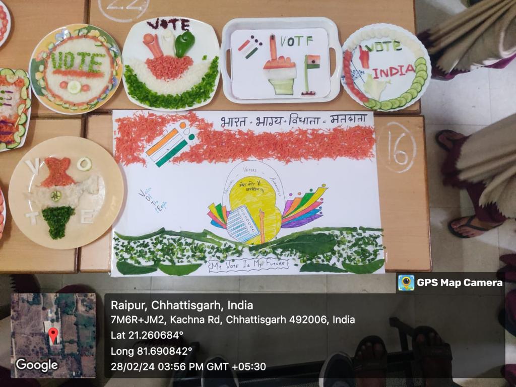 Raipur: To bring awareness among the youth towards electoral process , Pandit Harishankar Shukla Memorial College , as per the instructions of Election Commission hosted programme here. The students of NSS wing and electoral club took part in the event, which received good response. To mark the occasion, students opted salad theme as a competitive level.