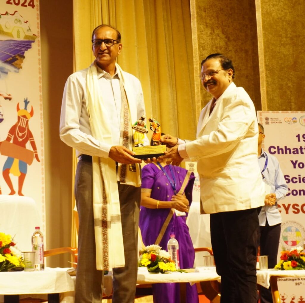 Prof. N.V. Ramana Rao expressed hope that through mission of “Viksit Bharat@2047”, India would evolve into a developed nation with science and technology playing a pivotal role. Emphasizing the importance of innovation in addressing climate change, he highlighted the government’s commitment to education, society, and research. He also pledged to advance Chhattisgarh on the path of science and technology, ensuring its progress and prosperity. Shri S.S Bajaj extended a warm welcome to all attendees. He advocated for the patenting of new innovations, highlighting the importance of fostering a culture of innovation. He also shed light on the National Children’s Science Congress, which aims to nurture scientific temperament among young minds aged 10 to 17 years by showcasing their talent at the central level.