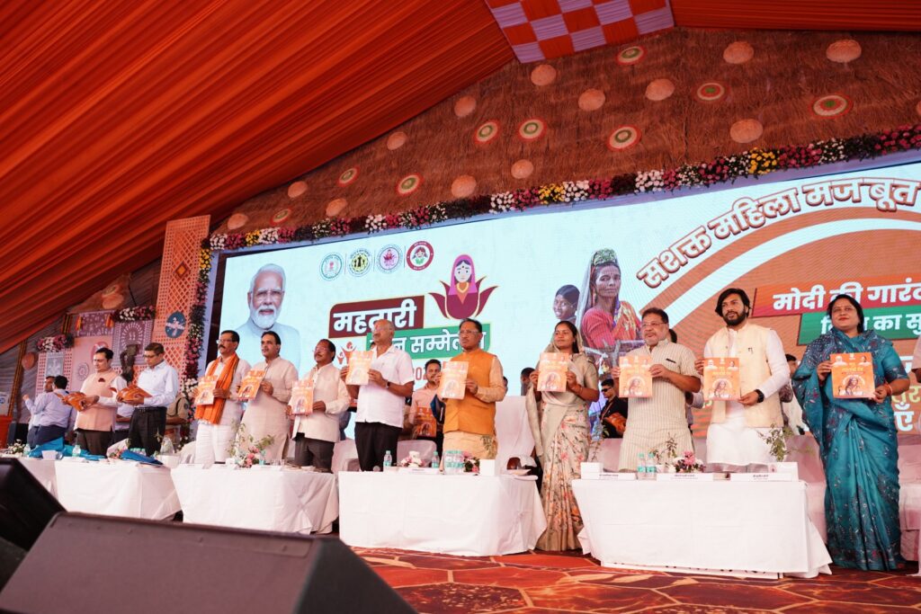 Raipur. Chief Minister Vishnu Deo Sai launched the ‘Bal Vivah Mukt Chhattisgarh Abhiyan at the Science College ground in Raipur . During the event, the Chief Minister signed the pledge board to end child marriage in Chhattisgarh. The campaign will be conducted in the state with the support of UNICEF through the Women and Child Development Department. Chief Minister unveiled the brochure of ‘Bal Vivah Mukt Chhattisgarh Abhiyan’ and urged women to pledge against child marriage. On this occasion, a large number of dignitaries, including Women and Child Development Minister Laxmi Rajwade, were present.