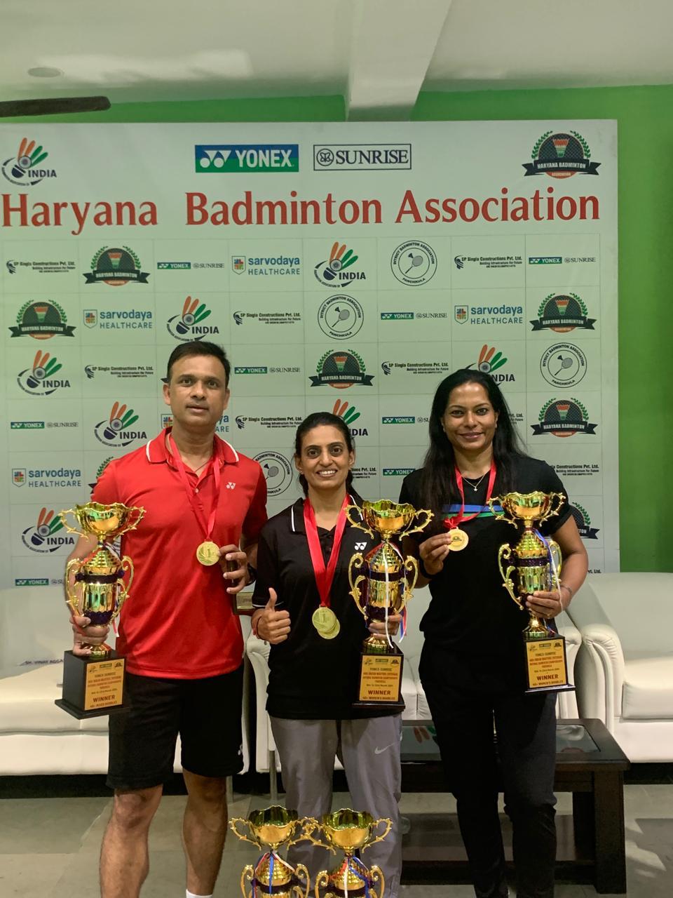 Panchkula ( Haryana): Poonam Tatwawadi of MP achieved double success in +55 in Yonex Sunrise 46th National Masters (Veterans) Badminton Championship, Vasant Kumar Shikari of MP was runner-up in +75 men’s singles, Pooja Mehta of Gujarat achieved triple success in +45 age group, Poonam Tatwawadi and Vasant Kumar Shikari are from Bhopal, Pooja Mehta (formerly Parekh) has been a player from Indore,