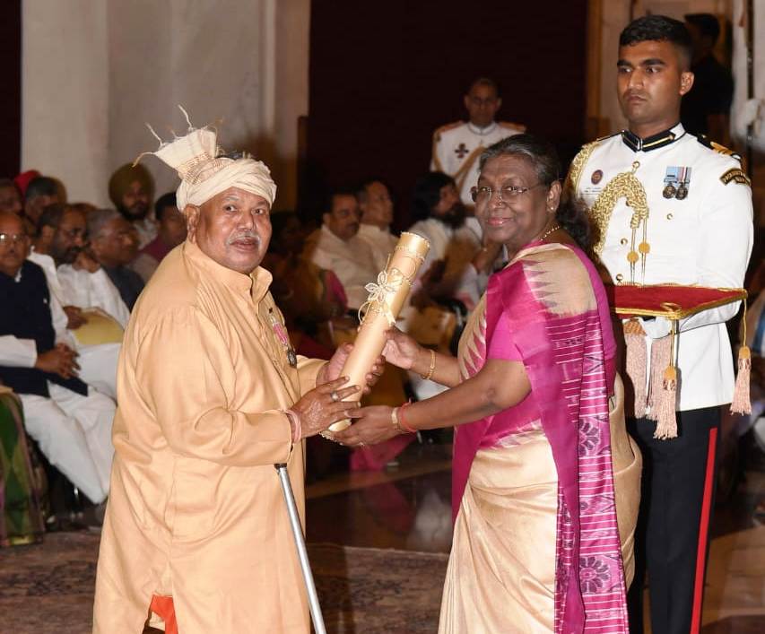 President honores Nadi Vaidya Hemchand Manjhi with Padma Shri
