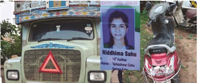 At present, Bhilai Nagar Police is investigating the accident. According to the information received, Riddhima Sahu, a student studying in Scholar Empire Coaching Center, became a victim of the accident. Riddhima was going to coaching on her Activa CG BA 3875 around 5:30 pm on Thursday evening. While turning near Panthi Chowk Sector-8, the vehicle was suddenly crushed by a truck coming from behind. The driver fled after the accident. Eyewitnesses said that the girl riding the scooter was wearing a helmet.
