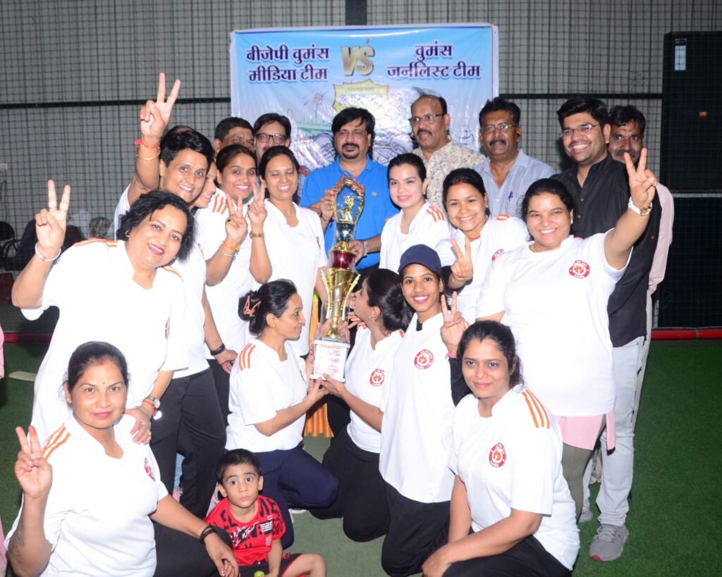 In the prize distribution ceremony, Dr. Deepti Singh Hada was presented with the Best Bats Player award, Pooja Mishra with Best Bowler award and Savita Akhand with Women of the Match award and trophy. In the beginning, State Press Club, MP president Praveen Kumar Khariwal, BJP media in-charge Ritesh Tiwari, former media in-charge Devkinandan Tiwari, MP representative Krishnakant Rokde and Sameer Pathak introduced themselves to the players. In the end, Sudesh Gupta expressed his gratitude.