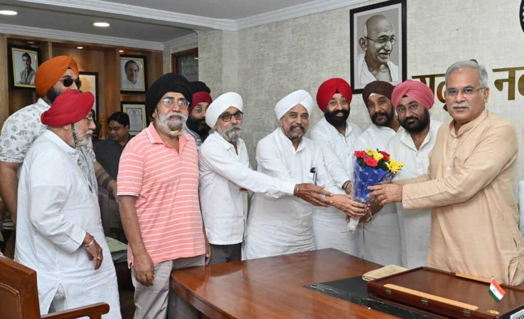 रायपुर, 29 सितंबर 2023/ मुख्यमंत्री श्री भूपेश बघेल से आज शाम यहां उनके निवास कार्यालय में सिक्ख समाज छत्तीसगढ़ के प्रतिनिधिमंडल ने सौजन्य मुलाकात की। मुख्यमंत्री को प्रतिनिधिमंडल में 01 अक्टूबर को सिक्ख समाज द्वारा आयोजित प्रदेश स्तरीय सिक्ख सम्मेलन में शामिल होने का आमंत्रण दिया। मुख्यमंत्री श्री बघेल ने आमंत्रण के लिए सिक्ख समाज को धन्यवाद दिया।