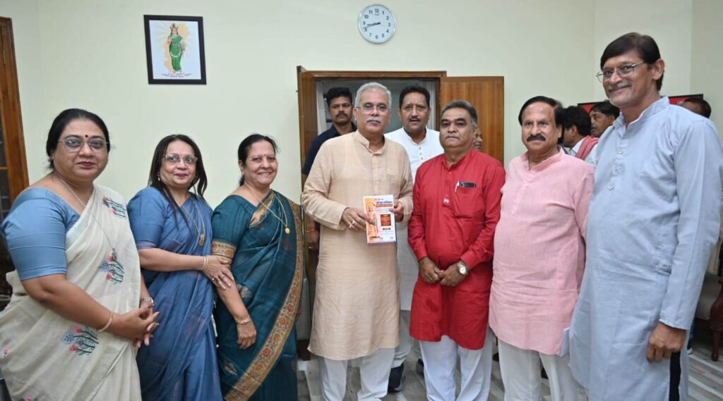 रायपुर, 29 सितंबर 2023/ मुख्यमंत्री श्री भूपेश बघेल से आज शाम यहां उनके निवास कार्यालय में छत्तीसगढ़ लोहाणा महिला मंडल के पदाधिकारियों ने सौजन्य मुलाकात की। उन्होंने मुख्यमंत्री को 1 अक्टूबर को राजधानी रायपुर के बैरन बाजार में आयोजित श्री 108 संगीतमय अखण्ड हनुमान चालीसा पाठ में शामिल होने के लिए आमंत्रित किया। मुख्यमंत्री श्री बघेल ने आमंत्रण के लिए महिला मंडल के सदस्यों को धन्यवाद दिया।