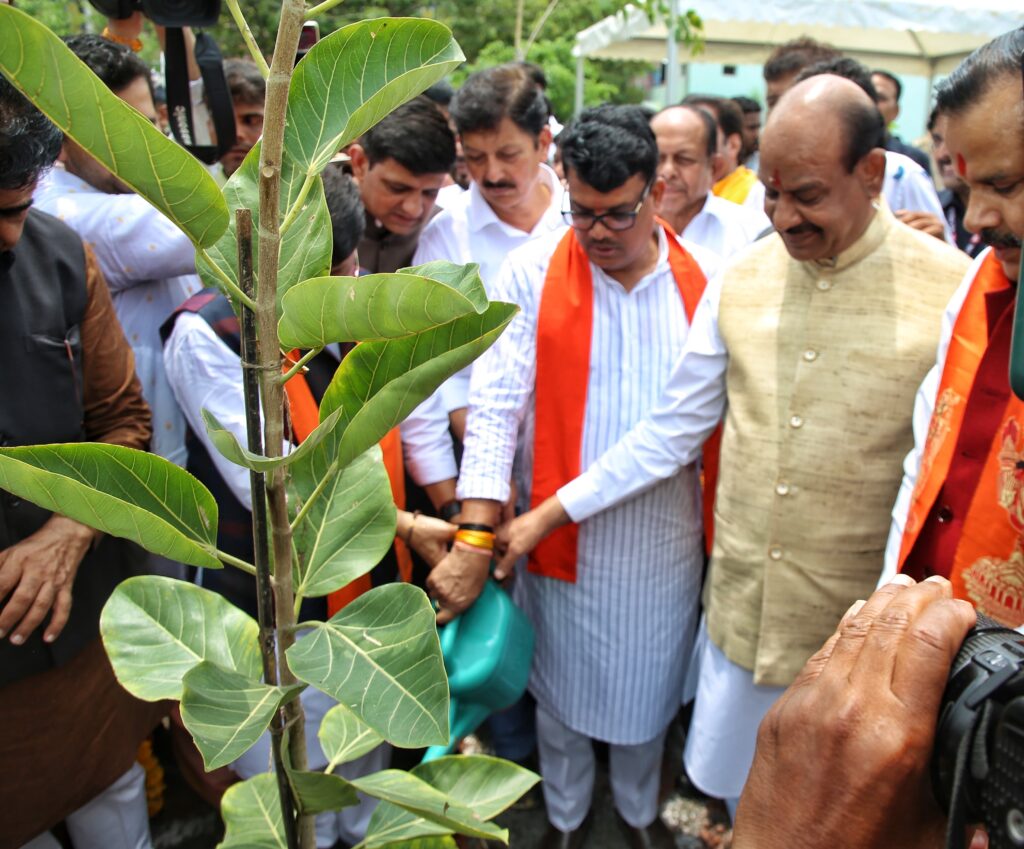 State Urban Development and Housing Minister Kailash Vijayvargiya stressing the importance of planting trees in sustaining human existence. He called for collective efforts to plant and protect more trees.