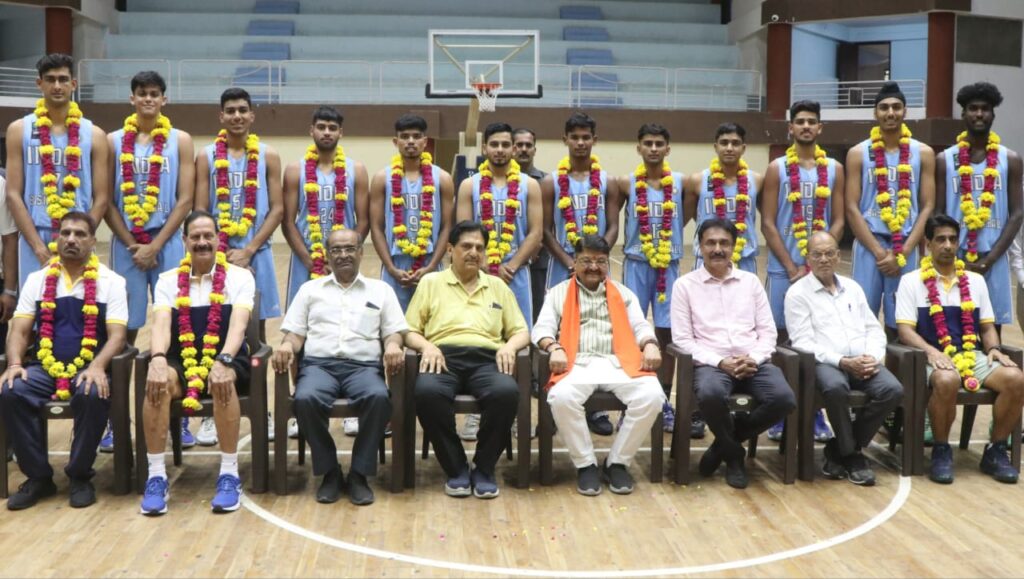 Indore (Team Newsbuddy): Basketball Federation of India General Secretary Kulvinder Singh Gill announced the South Asian Basketball Championship U-18 Boys team to be held in Colombo, Sri Lanka from 10 to 13 July. On this occasion, Madhya Pradesh Basketball Association Chairman Kailash Vijayvargiya, General Secretary Avinash Anand, Prof S K Bandi and Laxmikant Patel were also present. Kailash Vijayvargiya welcomed the players of the Indian team and distributed gifts to the players and wished them to return victorious. The team will be leaving from Indore for Colombo tomorrow. The team’s coaching camp was held at the Basketball Complex in Indore for past last one month.