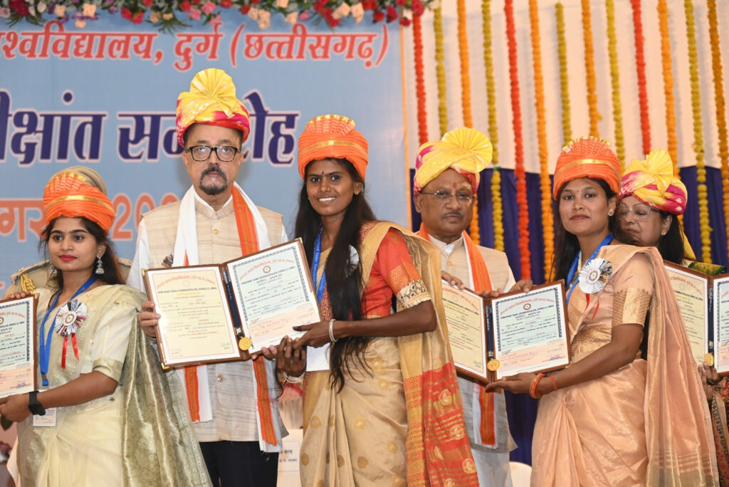 Chief Minister Vishnu Deo Sai, addressing the ceremony, announced the construction of a University Teaching Department (UTD) and an auditorium in the university’s under-construction building, responding to the Vice Chancellor’s request. He highlighted that the Chhattisgarh Government has implemented the National Education Policy 2020 across the state from the academic session 2024-25. He stated that NEP-2020 will allow students to choose subjects according to their interests and enable them to secure good jobs or establish their businesses based on their skills. He mentioned Prime Minister Shri Narendra Modi’s goal of a developed India by 2047, stating that Chhattisgarh is actively working towards contributing to this objective. He emphasised that everyone needs to contribute according to their capabilities for a developed India. Sai noted that the Chhattisgarh Government is striving to make significant progress in the fields of education, health, and environment, citing the establishment of PM SHRI schools as a prime example of these efforts.