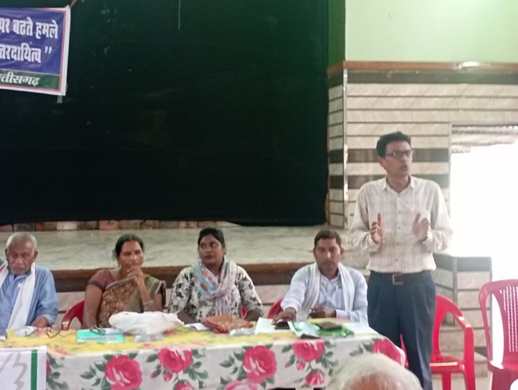 Speakers associated with the mass movements said that everyone is well aware that communal tension has been increasing in the state of Chhattisgarh for the last several months and minorities, especially people from the Christian and Muslim communities and Dalit / oppressed people are being harassed by majoritarian religious saffron fanatics. Sometimes mob lynching or violent incidents are being committed in the name of religious conversion and sometimes in the name of cow protection. In response to these hooliganisms by the saffron brigade, the victims are not getting any justice from the police administration. Apart from this, due to the promotion of looting of water, forest and land of the state by highly corrupt crony corporate houses like Adani under the aegis of the government, the oppression of tribals is increasing in tribal-dominated Chhattisgarh including Bastar, Hansdev Forest. Murders in fake encounters, rapes, atrocities in custody and putting innocent tribals in jails have become an everyday affair. The poison of hatred and division is being spread among the people under the leadership of RSS fascist forces. The victims of which are Dalits/oppressed people and women including minorities. The situation is more or less the same in the whole country.
