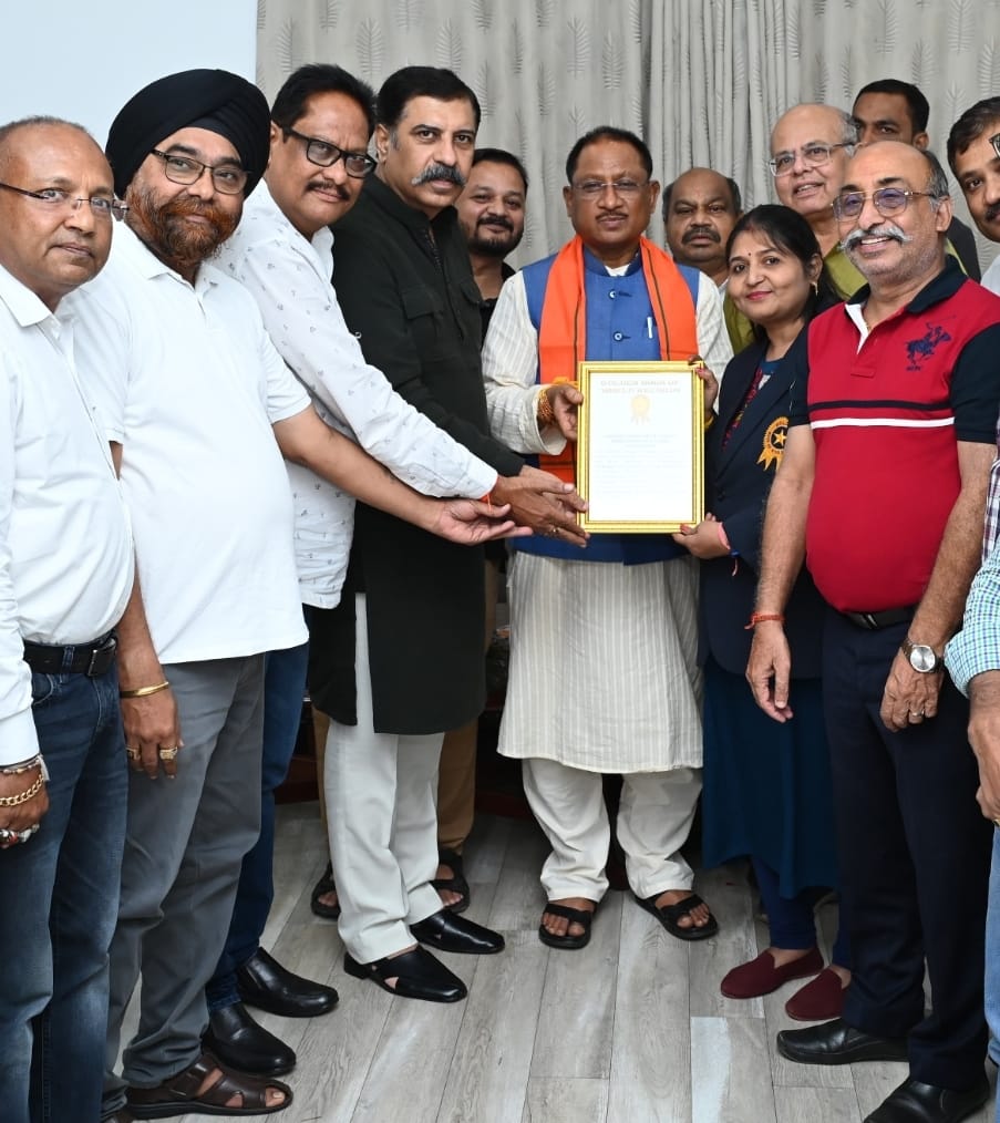 Raipur (Team Newsbuddy): Chhattisgarh Chamber of Commerce and Industries has achieved another historic feat and got its name registered in the Golden Book of World Records. On this proud achievement, the Chief Minister of the state Vishnu Dev Sai honored the Chamber President Amar Parwani and his team by presenting mementoes and medals. Raipur North Assembly MLA Purandar Mishra was also present on this occasion.