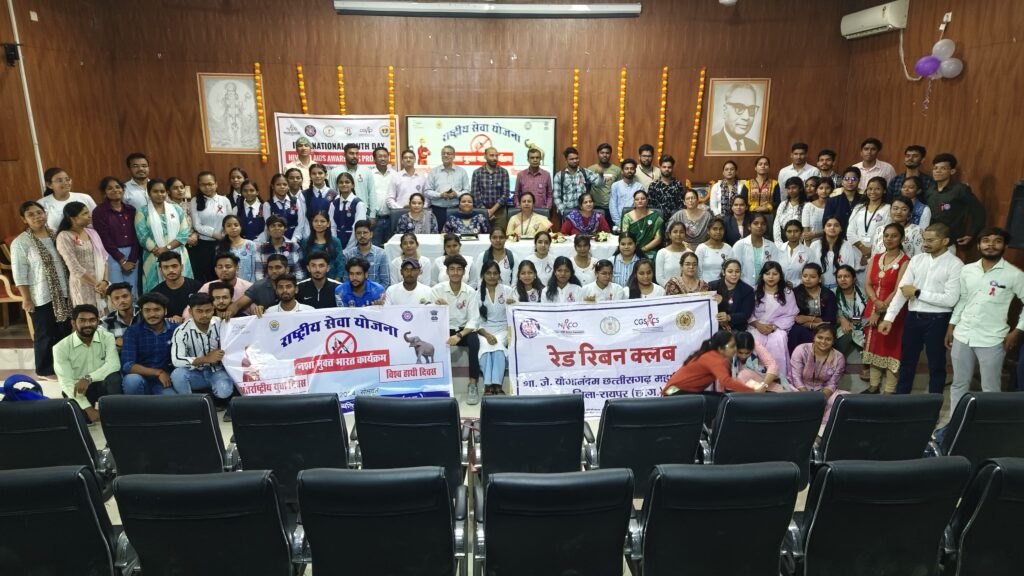 Raipur (Team Newsbuddy): The National Service Scheme (NSS) organized an event at Pandit Ravishankar Shukla University, Raipur to mark International Youth Day. The program commenced with a welcome address by Professor L.S. Gajpal, NSS Program Coordinator, who highlighted the importance of drug-free living and societal development. He also discussed the relationship between drug abuse and HIV.