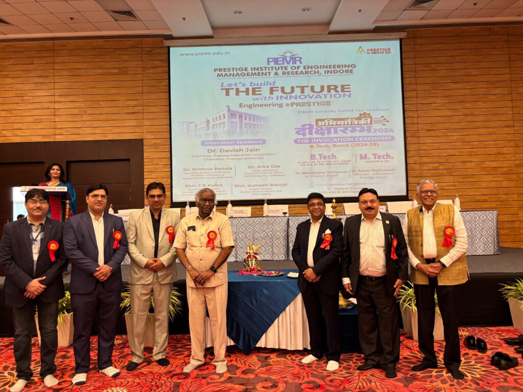 Indore(Team Newsbuddy): The Abhiyantriki Deeksharambh 2024, a grand invocation ceremony for the newly admitted students of Prestige Institute of Engineering Management and Research (PIEMR), Indore, was held at the Brilliant Convention Centre, marked by the presence of esteemed technocrats, academicians, and motivational leaders. The event provided an inspirational launchpad for the future engineers as distinguished speakers delivered powerful messages on success, innovation, and professional growth.