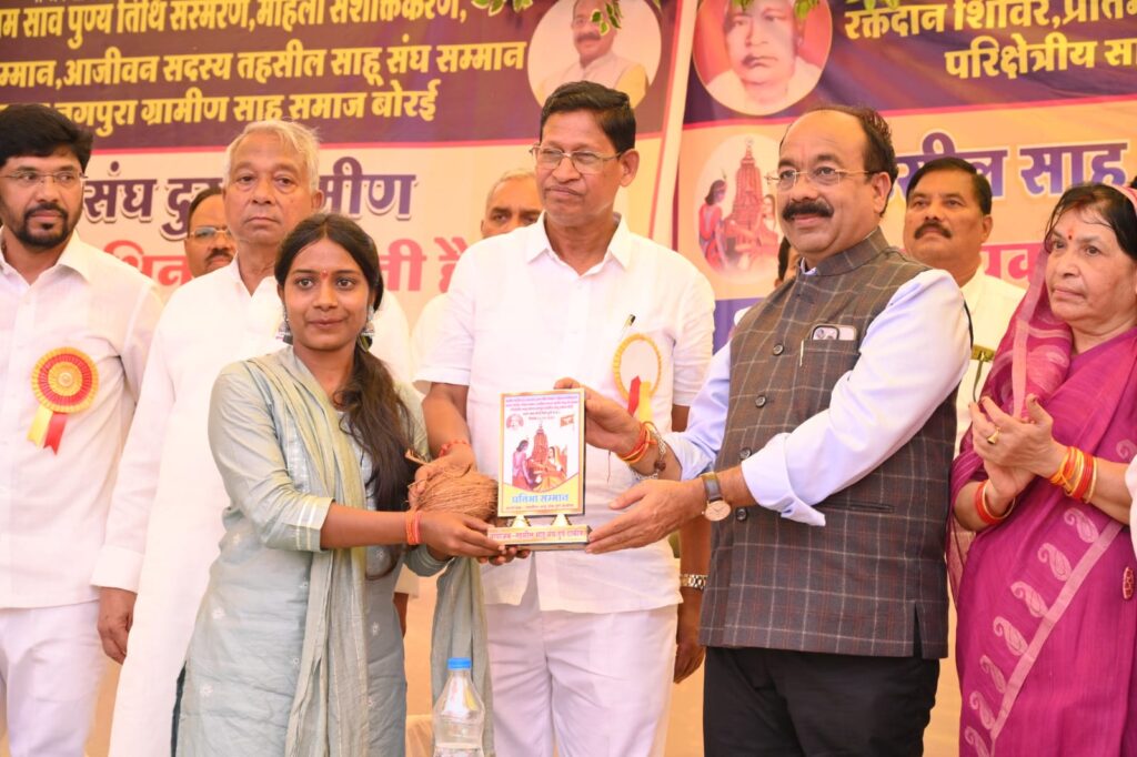 Raipur (Team Newsbuddy) : Deputy Chief Minister Arun Sao attended the Tehsil level Pratibha Samman ceremony organized in Borai of Durg district in memory of the death anniversary of late Dau Uttam Sao as the chief guest. Addressing the ceremony, he said that the society and the country should move forward by following the path shown by their ancestors. The society which will move with time will be ahead in development. Sharing the experiences of his recently concluded stay in America, he said that many youths of Sahu community are also bringing glory to the society and the state with their talent and ability, increasing the pride of the society. I have just come back after meeting many such youths.