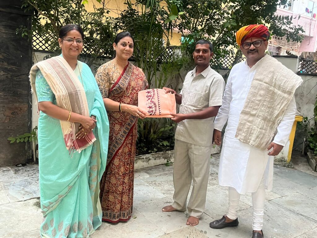 Kishore Rajput told about the shawl made from flax, saree made from the fiber of ladyfinger stems, and saree made from weed that it is completely organic and the colors in it are also natural, on a large scale. It can also be very cost effective with its production, district panchayat member Pragya Nirvani, while assuring to convey the message of Kishore Rajput to Chief Minister Vishnudev Sai, said that agriculture researcher Kishore Rajput of Navagarh region is making gold from weeds, youths should learn from his innovation, Kishore Rajput presented a shawl made of linseed fibre to Dr Saurabh Nirvani, coordinator of All India Chhattisgarhi Mahasabha, and also presented a sari made of weeds to Shweta Anand Tyagi, state office minister of Madhya Pradesh BJP’s Mahila Morcha, who was present there.
