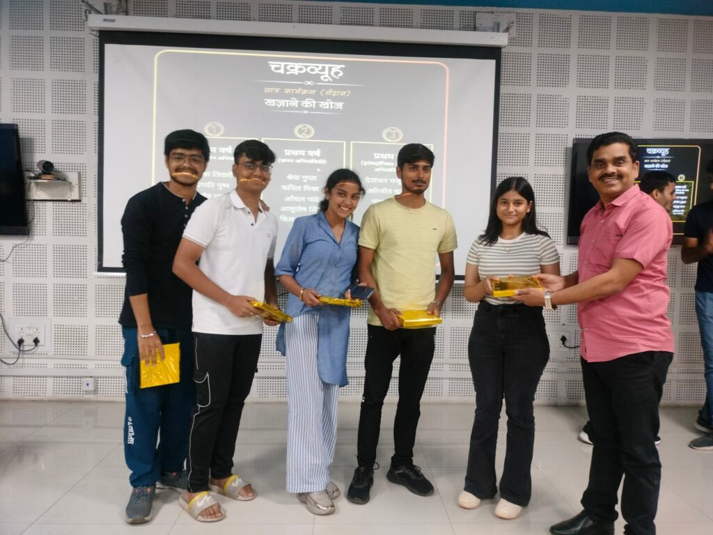 The prize distribution ceremony for Aahwahan’24 began with the lamp lighting ceremony. The winners of Kavita Vachan competition organised for faculty members were as follows : 1st, 2nd and 3rd position were secured by Dr. Suraj Kumar Mukti, Dr. Ayush Khare and Dr. Rajan Kumar respectively. The winners for Shabd Rachna competition were as follows : 1st, 2nd and 3rd position were secured by Dr. Suraj Kumar Mukti, Dr. Vivek Agnihotri and Dr. Ayush Khare respectively. The winners for Kahani Lekhan competition were as follows: 1st, 2nd and 3rd position were secured by Dr. Ayush Khare, Dr. Suraj Kumar Mukti, Dr. Rajan Kumar respectively.
