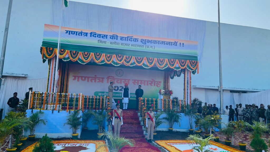 State Food Civil Supplies and Consumer Protection Minister Dayal Das Baghel unfurled the National Flag at the main function held at the historic Basic School ground in District Headquarters Bemetara. Following that, the Chief Minister’s message was read out.